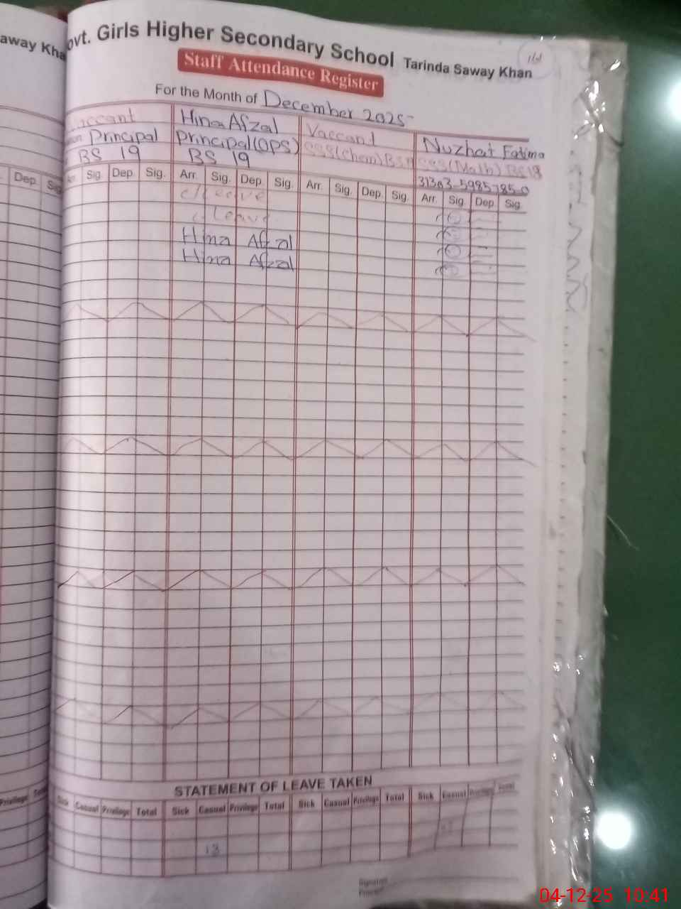 | Name: Hi**** Af**** Designation: (School Headmaster's/Headmistress's) Principal Phone/Cell Number: 03**** |