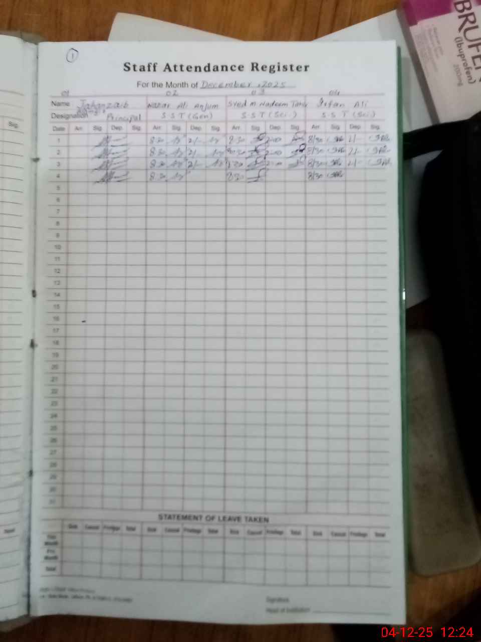 | Leave | Duty | Absent | Maternity | Medical | Ex- Pak |