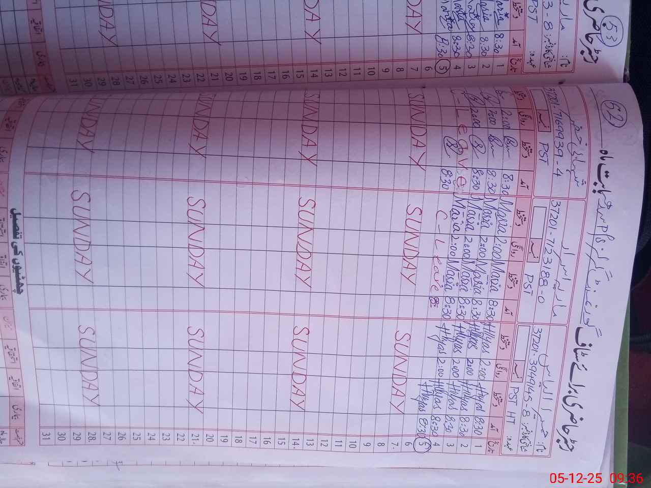 | CNIC | Full Name | Designation | R/C | Absence During Last Calender Month |