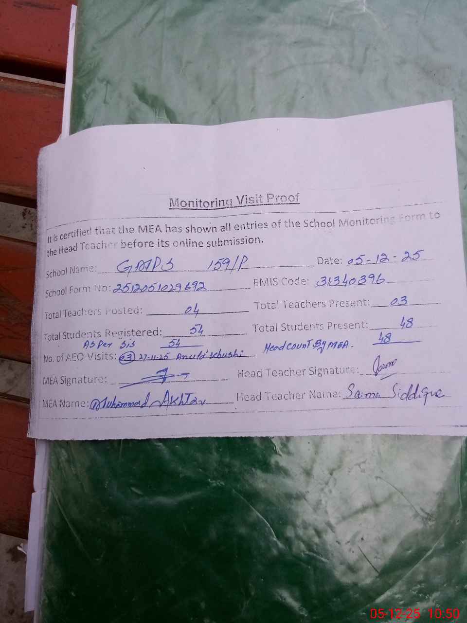 | EMIS Code: 31340396 | Name of School: GMPS 159/P | |||