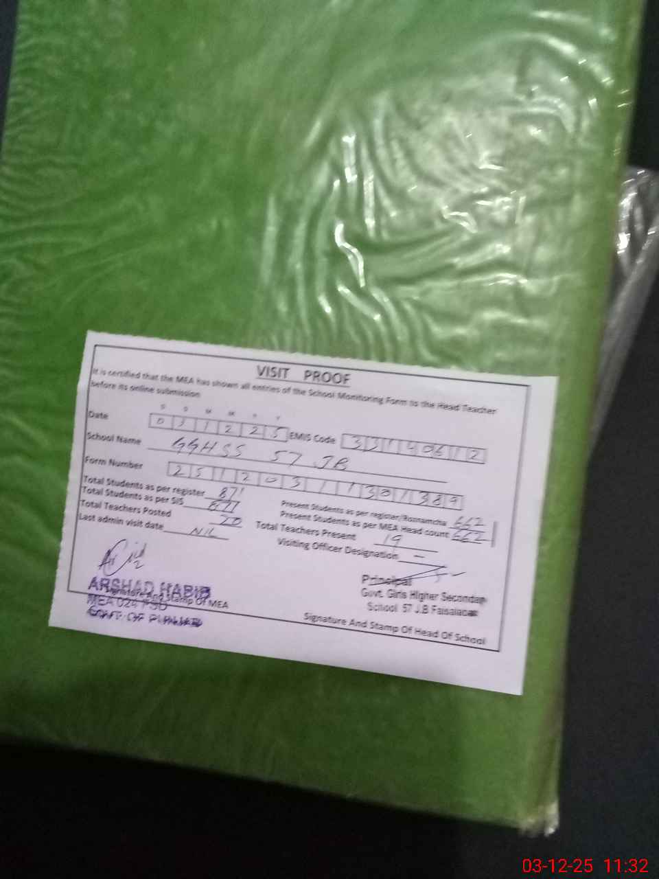| EMIS Code: 33140612 | Name of School: GGHSS CHAK 57 JB FSD | |||