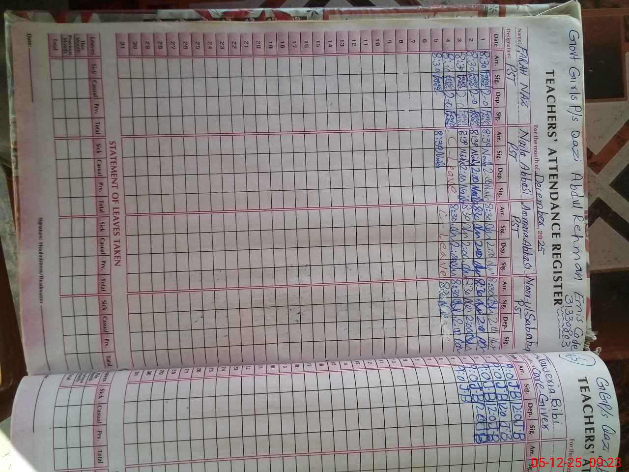 | EMIS Code: 31330803 | Name of School: GGPS QAZI ABADUR REHMAN | |||