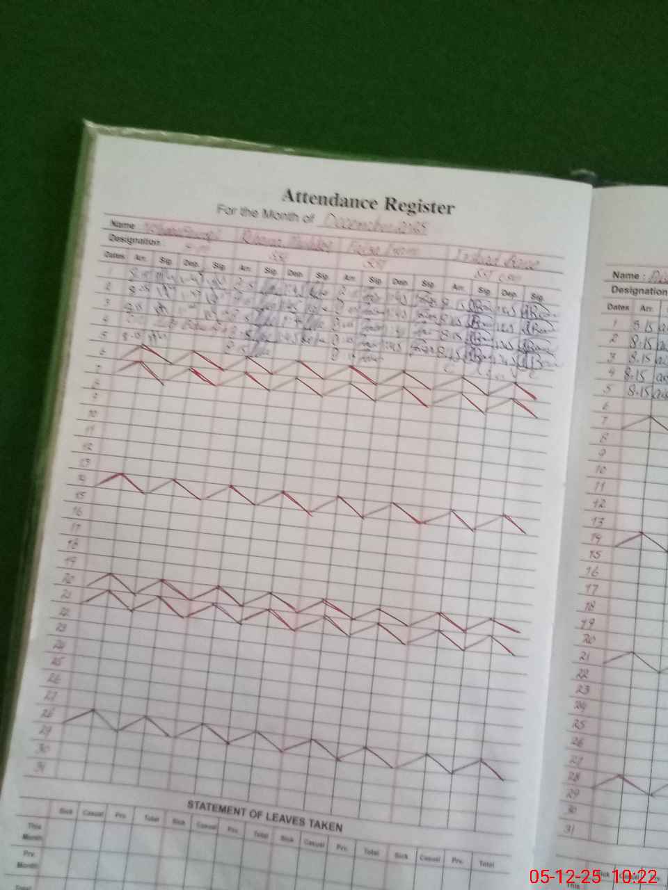 | CNIC | Full Name | Designation | R/C | Absence During Last Calender Month |