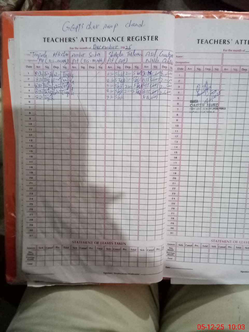 | Remarks (Use Separate Page if Required): attendence of teachers and students is not up date on sis more over Umber SABA PST applied long leave and approval awaiting | |||||