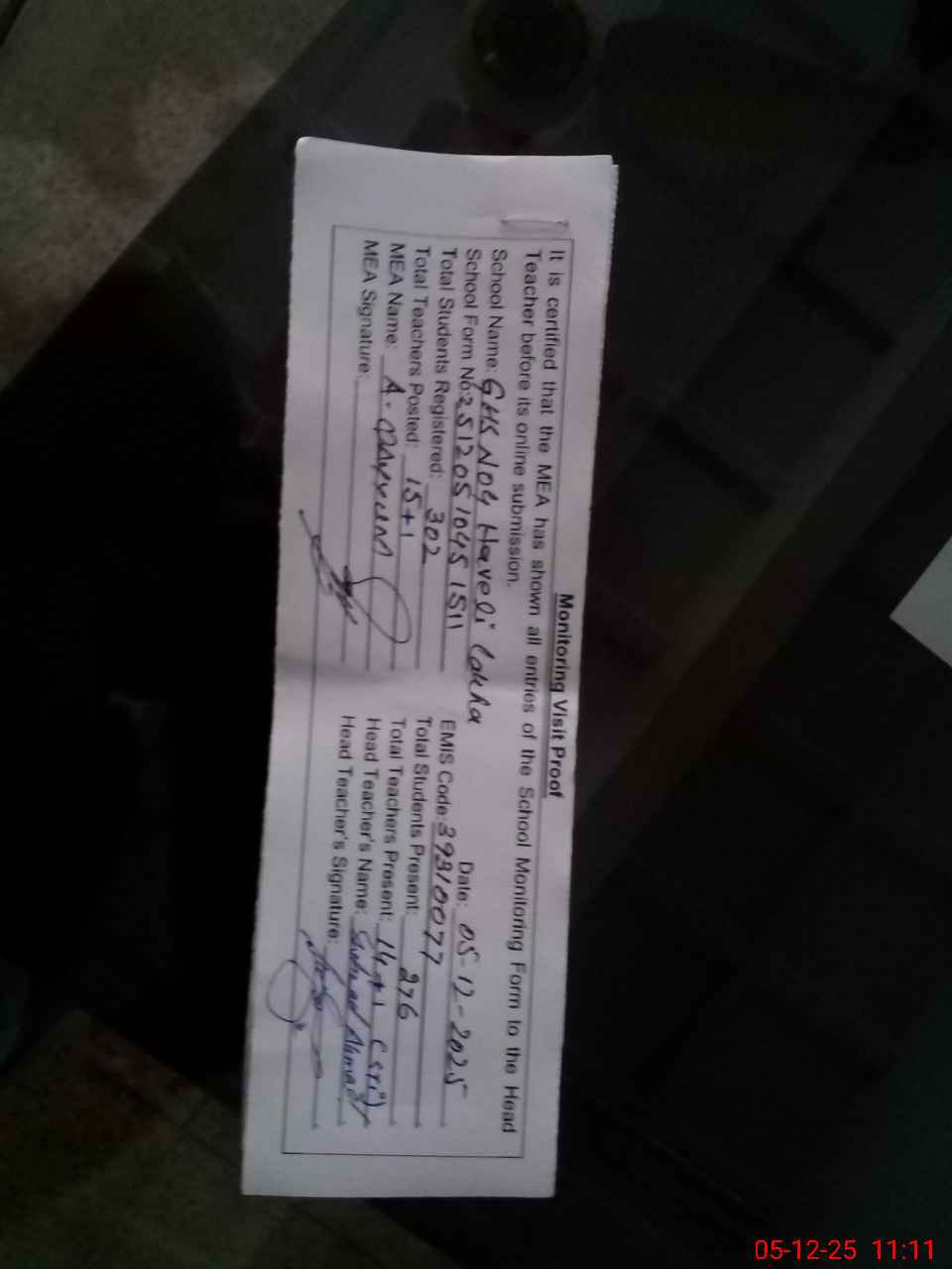 | EMIS Code: 39310077 | Name of School: GHS NO.4 HAVELI LAKHA | |||