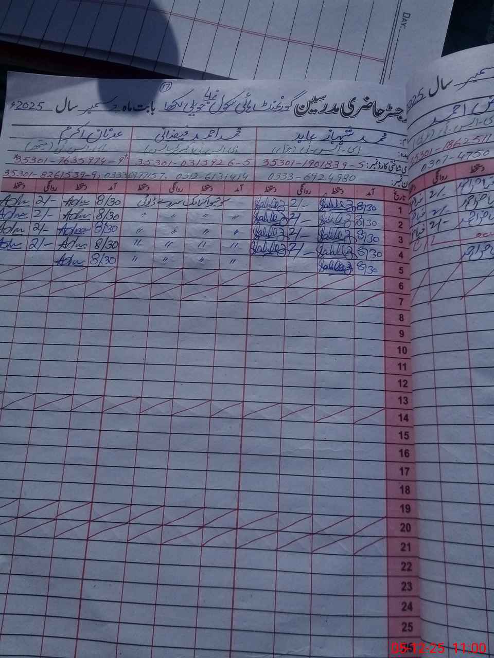 | Name: Sh**** Ah**** Designation: (School Headmaster's/Headmistress's) HM OPS Phone/Cell Number: 03**** |
