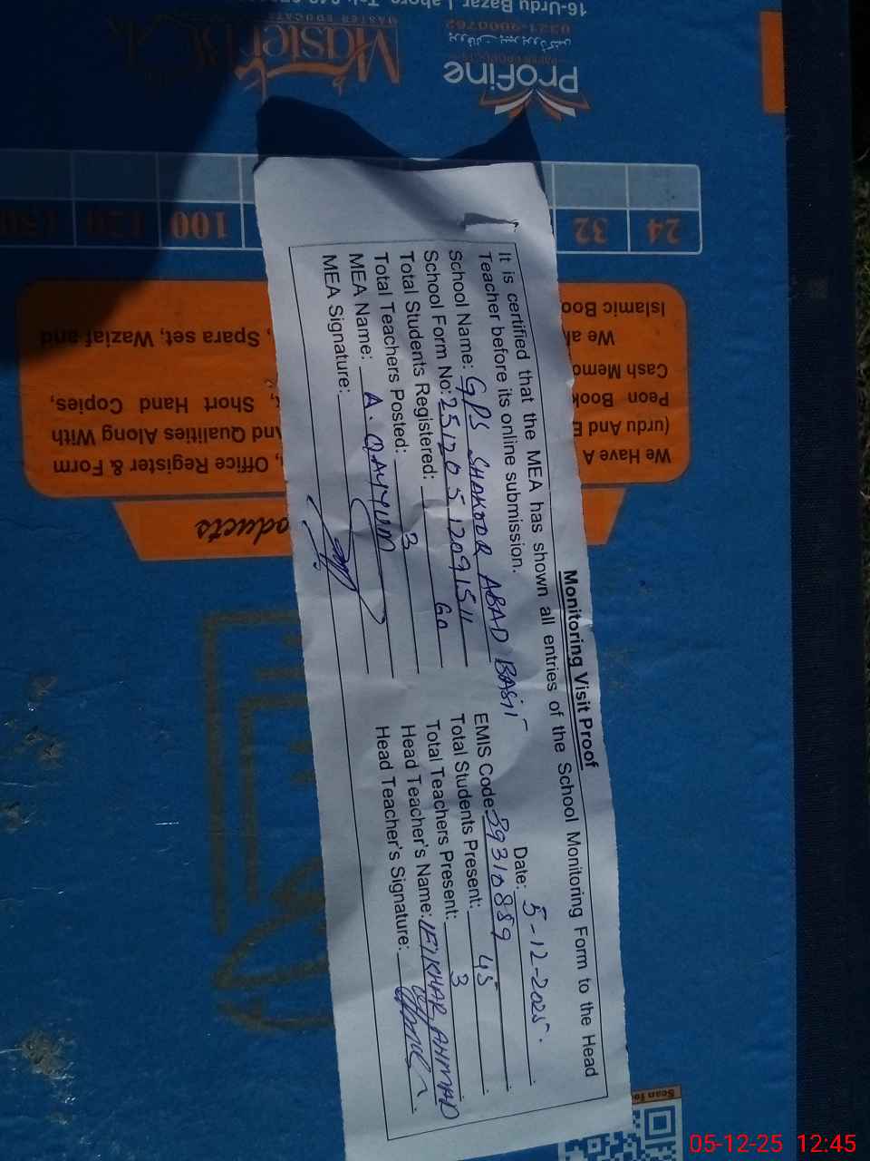 | EMIS Code: 39310859 | Name of School: GPS SHAKOOR ABAD BASTI | |||
