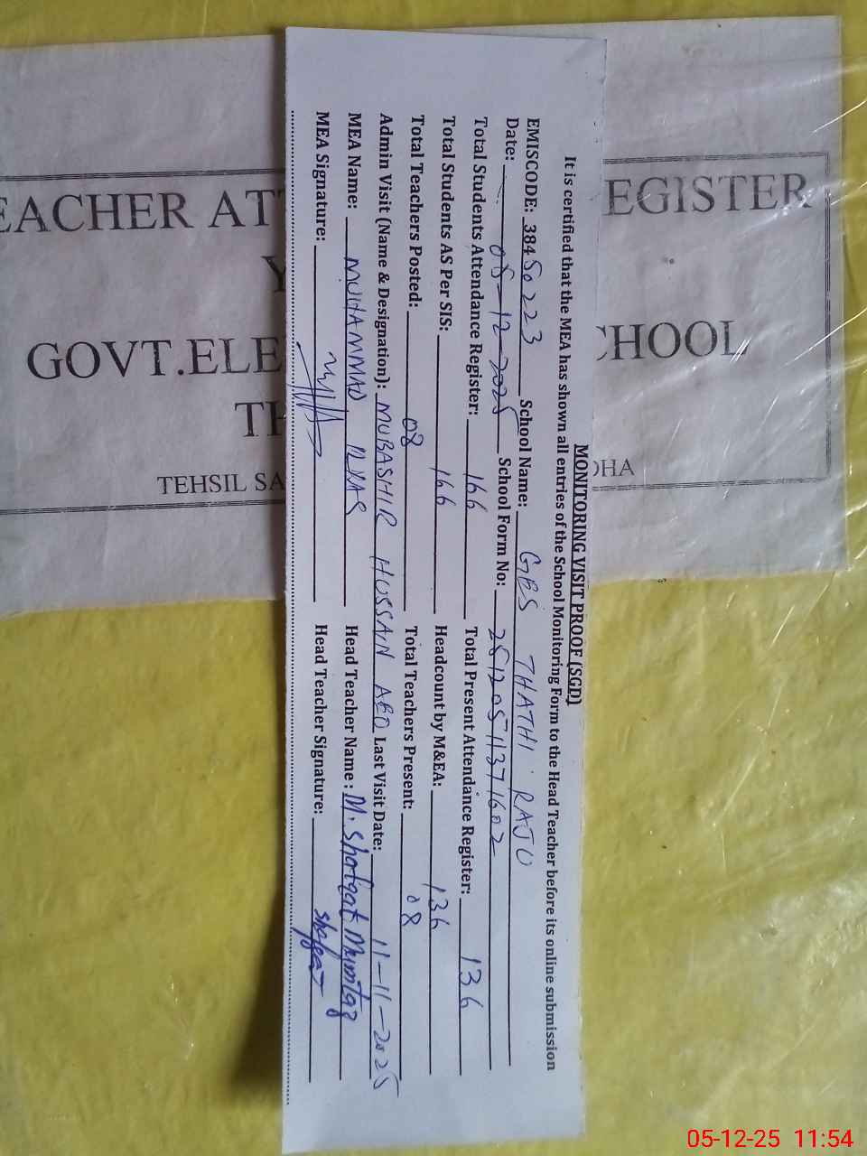 | EMIS Code: 38450223 | Name of School: GES THATTI RAJU | |||
