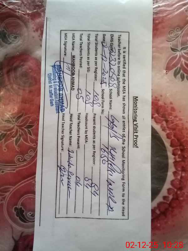 | Attendance Register | Head Teacher | MEA with School | Visit Proof |