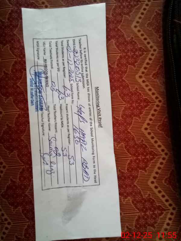 | Certified that this School was Inspected by the Undersigned MEA/DMO Today and the Information Stated Above is as Per Record. | |||||