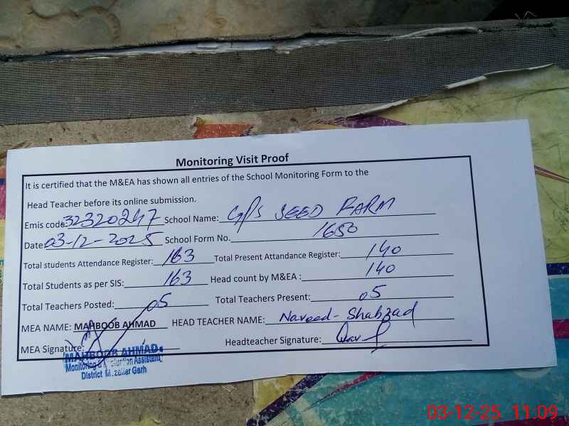 | Attendance Register | Head Teacher | MEA with School | Visit Proof |
