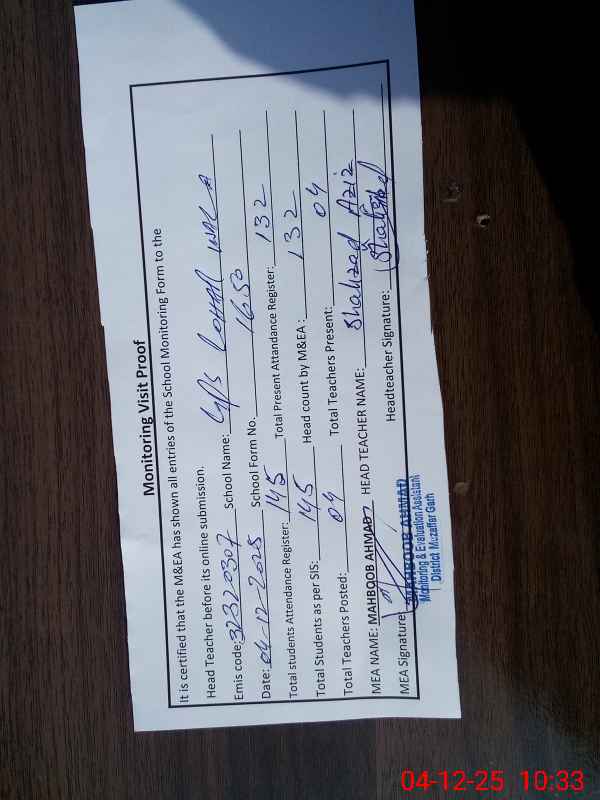 | EMIS Code: 32320307 | Name of School: GPS LOHAR WALA | |||