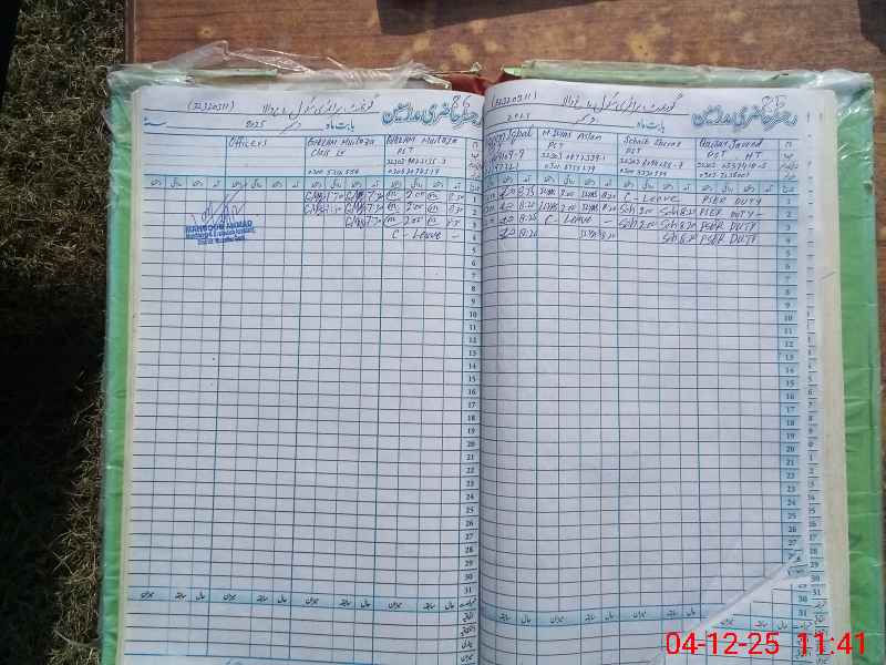 | CNIC | Full Name | Designation | R/C | Absence During Last Calender Month |