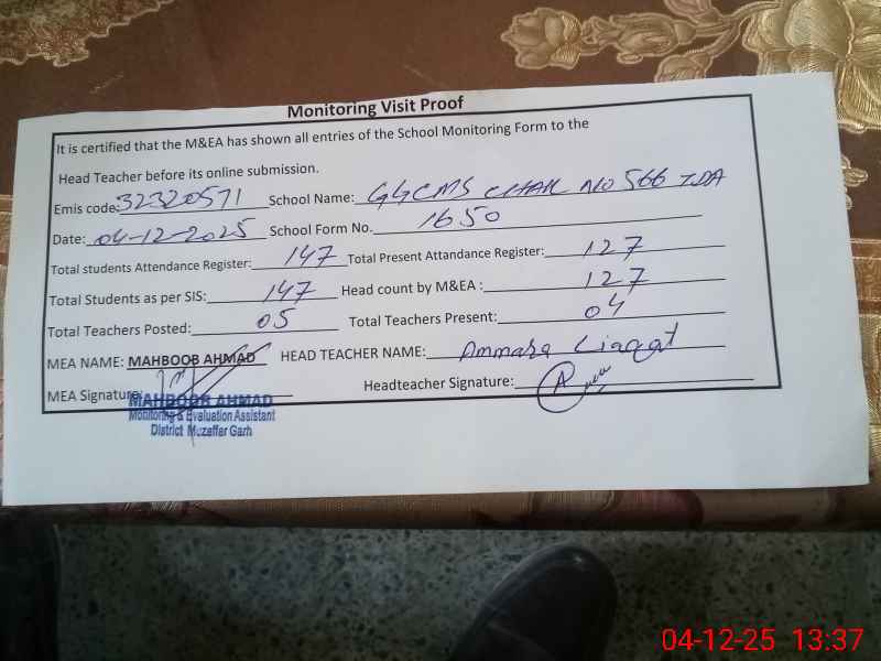 | EMIS Code: 32320571 | Name of School: GGCMS CHAK NO. 566/TDA | |||
