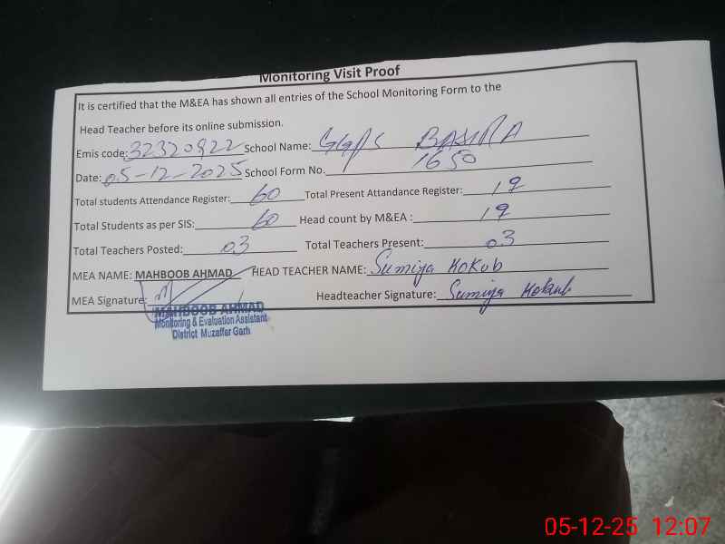 | EMIS Code: 32320922 | Name of School: GGPS BASIRA | |||
