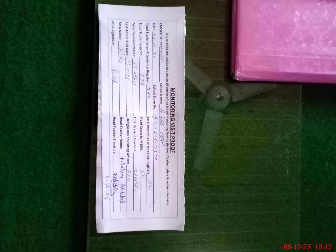 | EMIS Code: 39210060 | Name of School: GGHS 17/SP PAKPATTAN | |||
