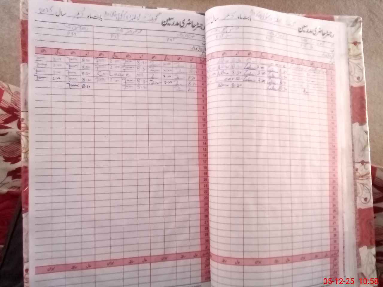 | CNIC | Full Name | Designation | R/C | Absence During Last Calender Month |