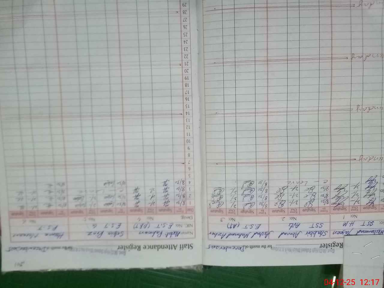 | CNIC | Full Name | Designation | R/C | Absence During Last Calender Month |
