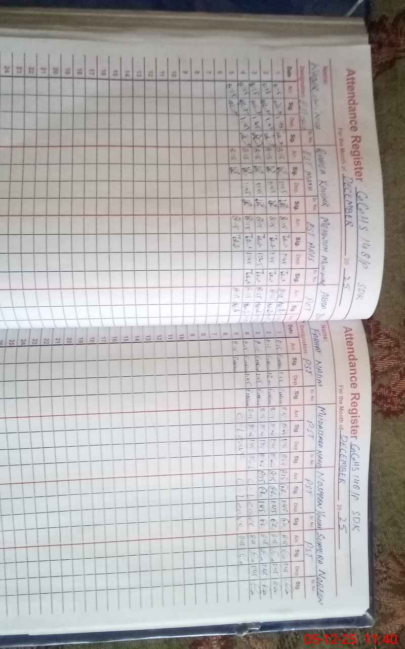 | CNIC | Full Name | Designation | R/C | Absence During Last Calender Month |