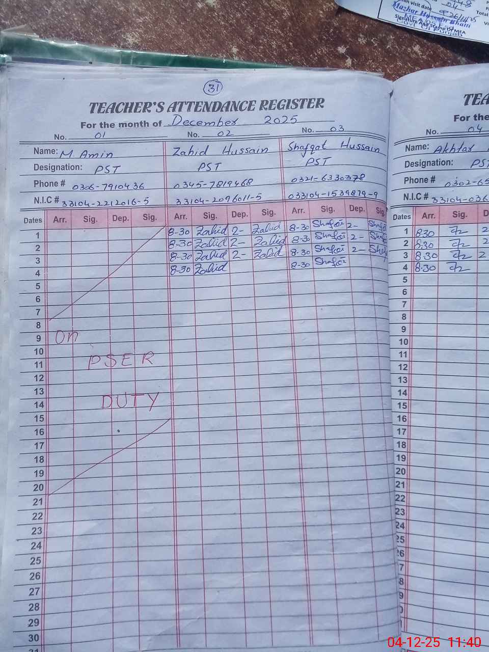 | Name: MU**** AM**** Designation: (School Headmaster's/Headmistress's) PST Phone/Cell Number: 03**** |