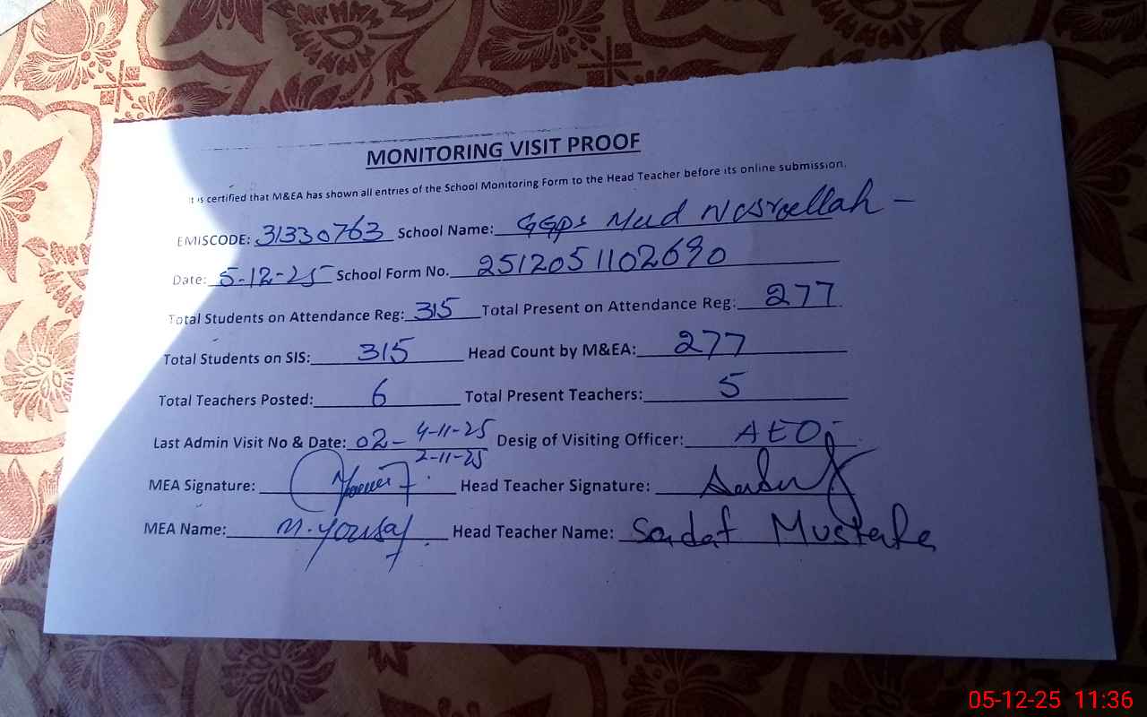| EMIS Code: 31330763 | Name of School: GGPS MUD NUSARULLAH | |||