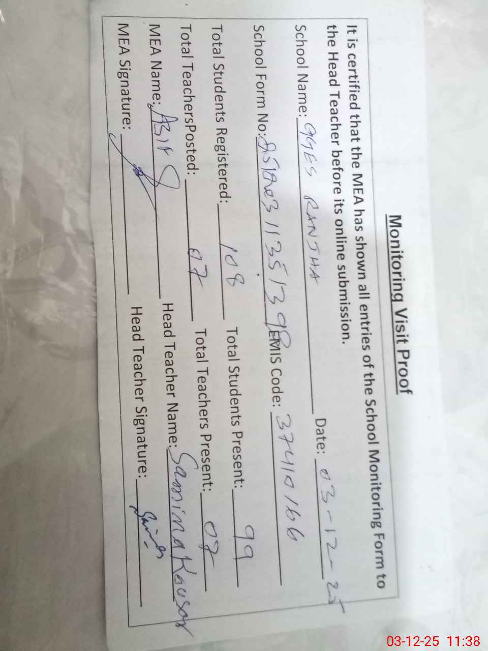 | EMIS Code: 37410166 | Name of School: GGES RANJHA | |||