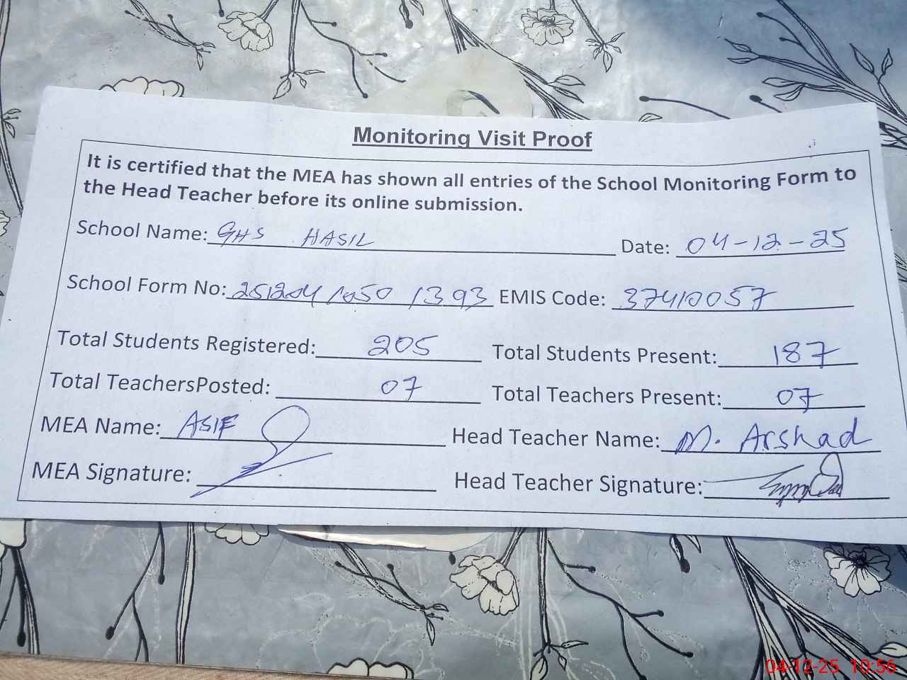 | EMIS Code: 37410057 | Name of School: GHS HASAL | |||