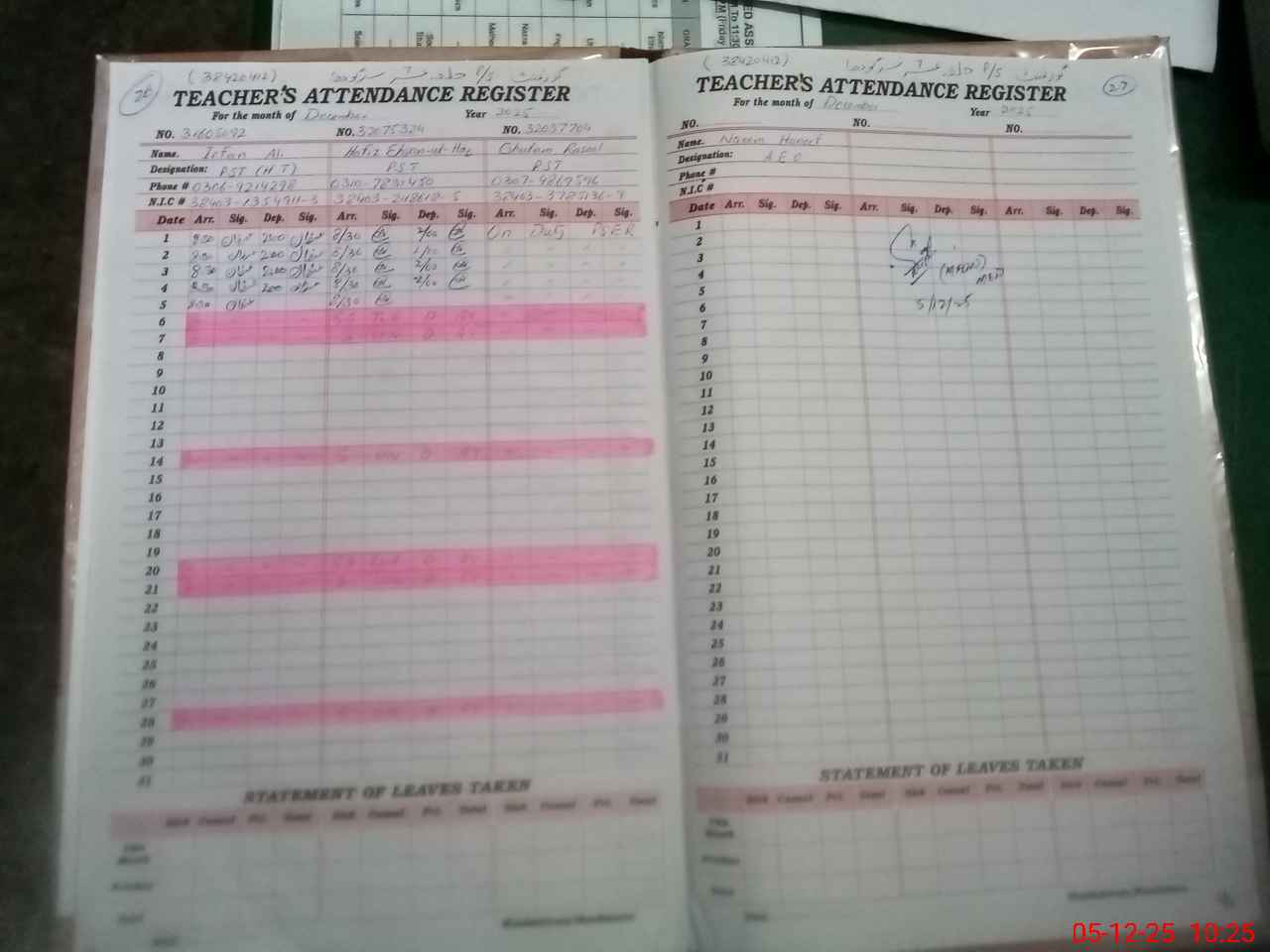 | Name: IR**** AL**** Designation: (School Headmaster's/Headmistress's) PST Phone/Cell Number: 03**** |