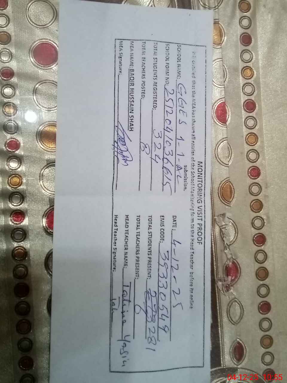 | EMIS Code: 39330549 | Name of School: GGES CHAK 1-1AL | |||