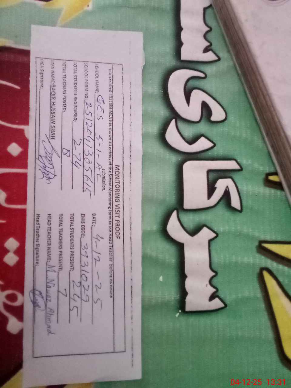 | EMIS Code: 39331029 | Name of School: GES CHAK NO. 5/1-AL | |||