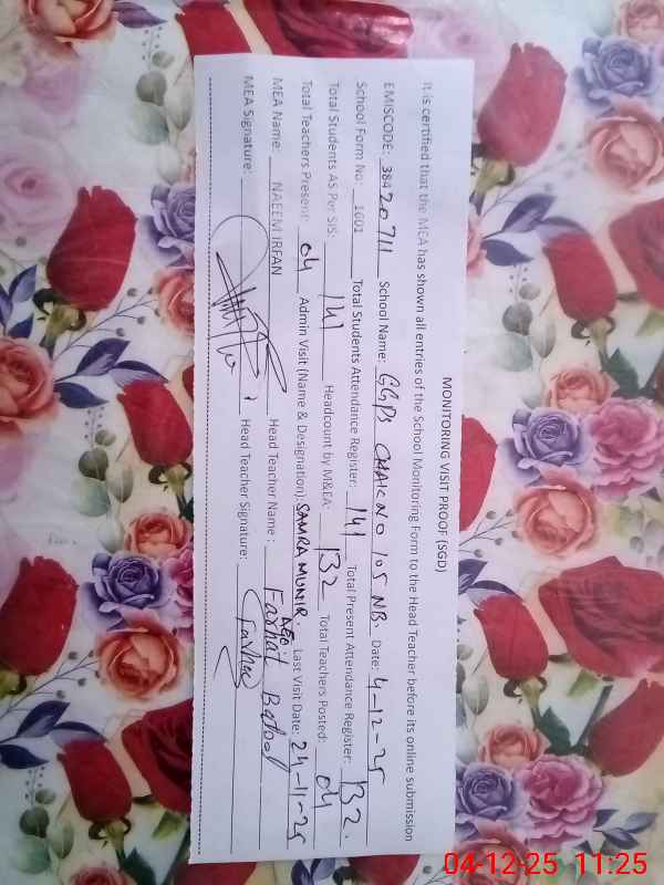 | EMIS Code: 38420711 | Name of School: GGPS CHAK NO.105 NB | |||