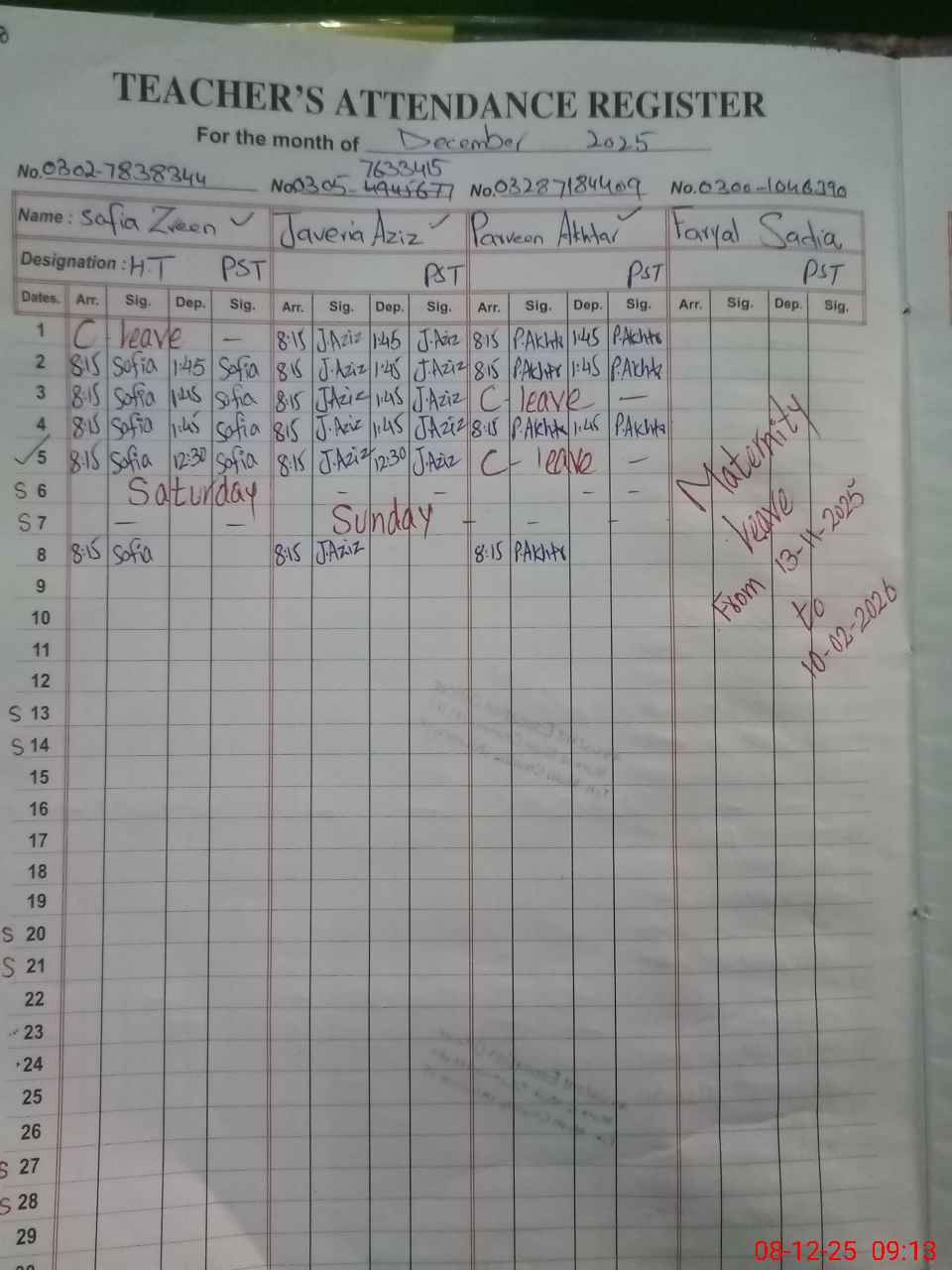 | Name: So**** Za**** Designation: (School Headmaster's/Headmistress's) PST Phone/Cell Number: 03**** |