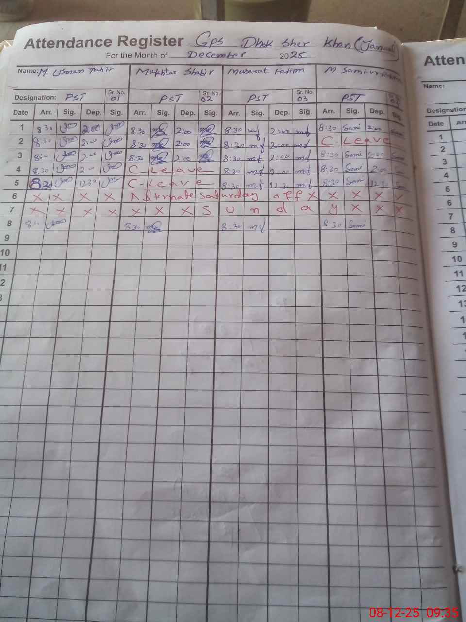 | CNIC | Full Name | Designation | R/C | Absence During Last Calender Month |