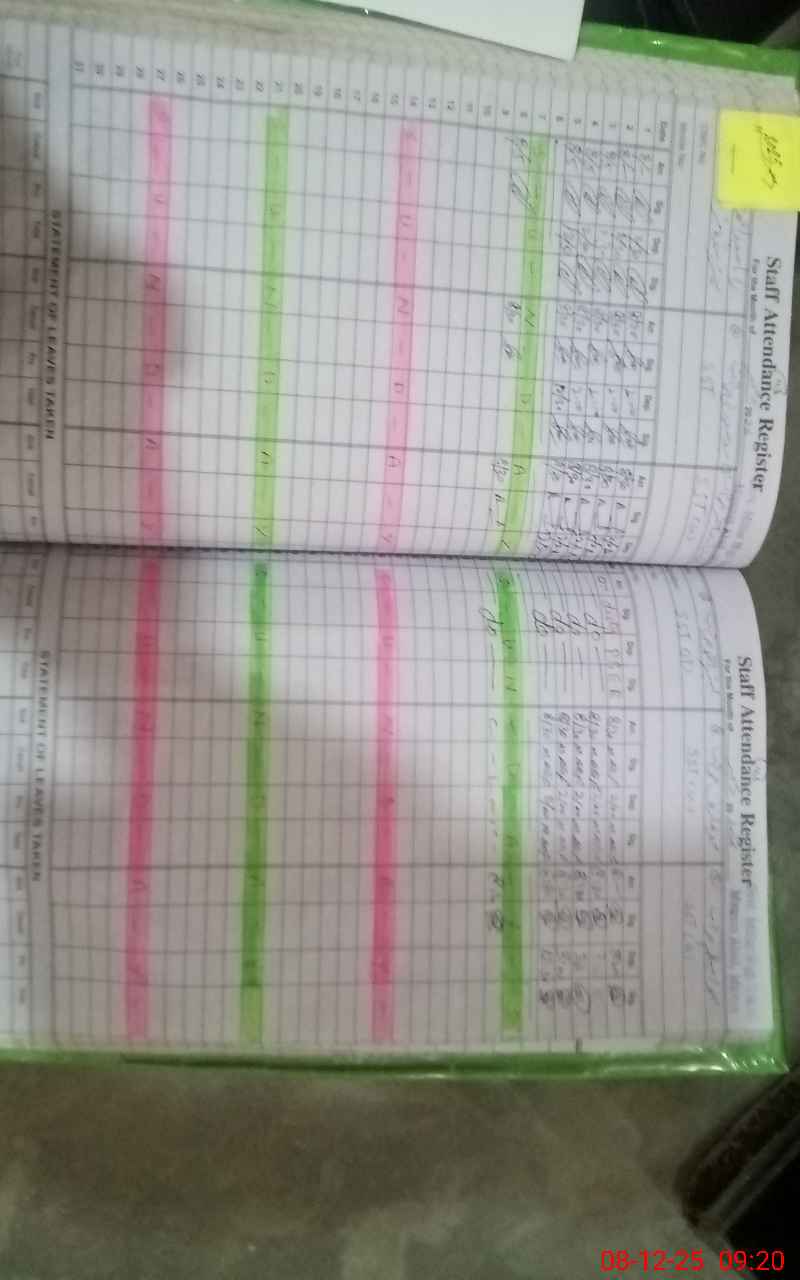 | CNIC | Full Name | Designation | R/C | Absence During Last Calender Month |