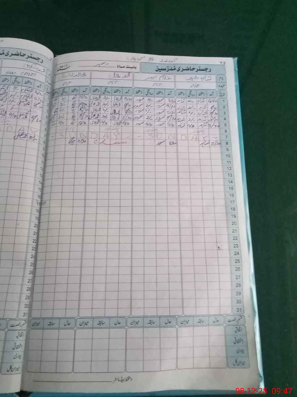| CNIC | Full Name | Designation | R/C | Absence During Last Calender Month |