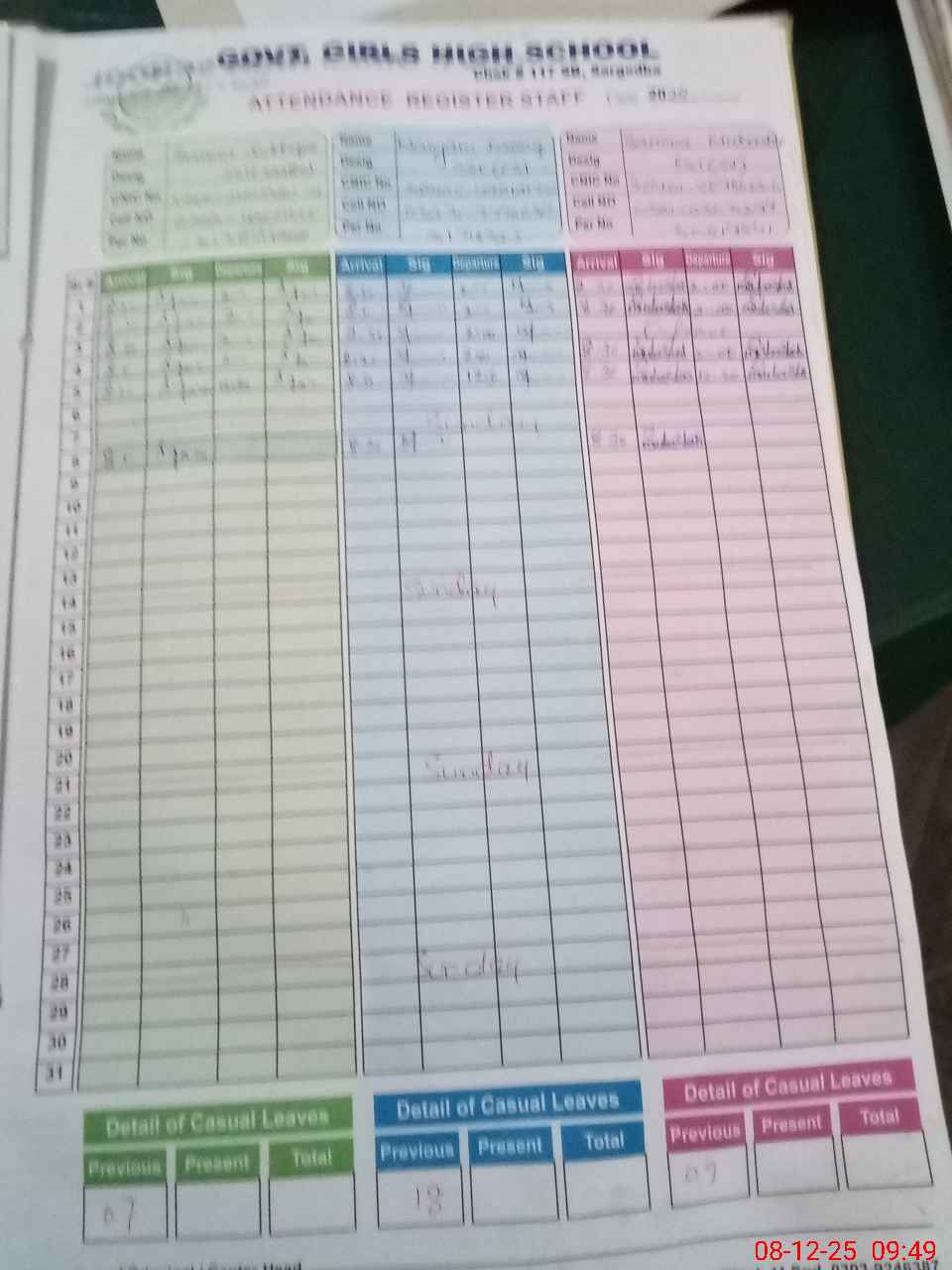 | CNIC | Full Name | Designation | R/C | Absence During Last Calender Month |