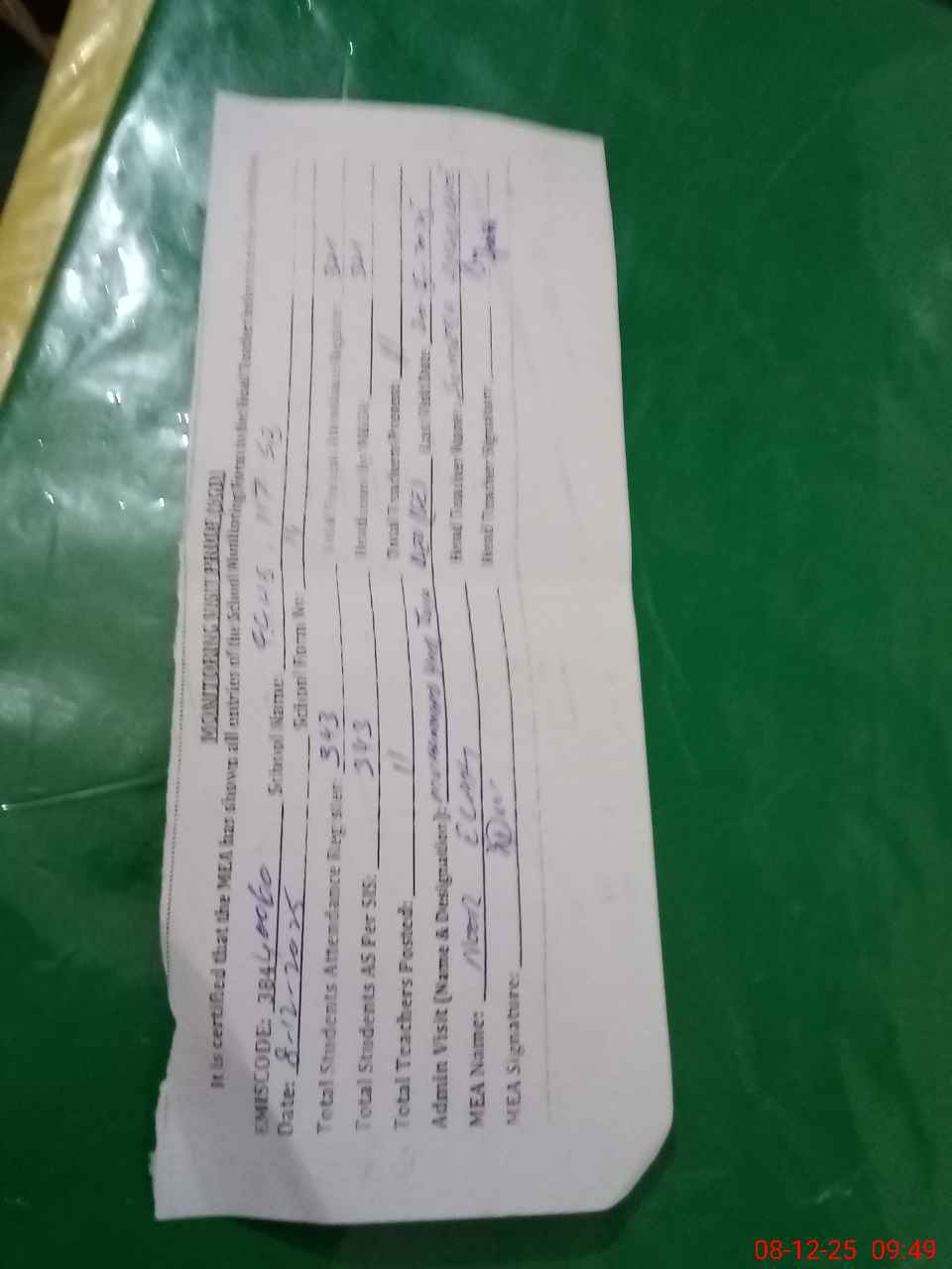 | Attendance Register | Head Teacher | MEA with School | Visit Proof |