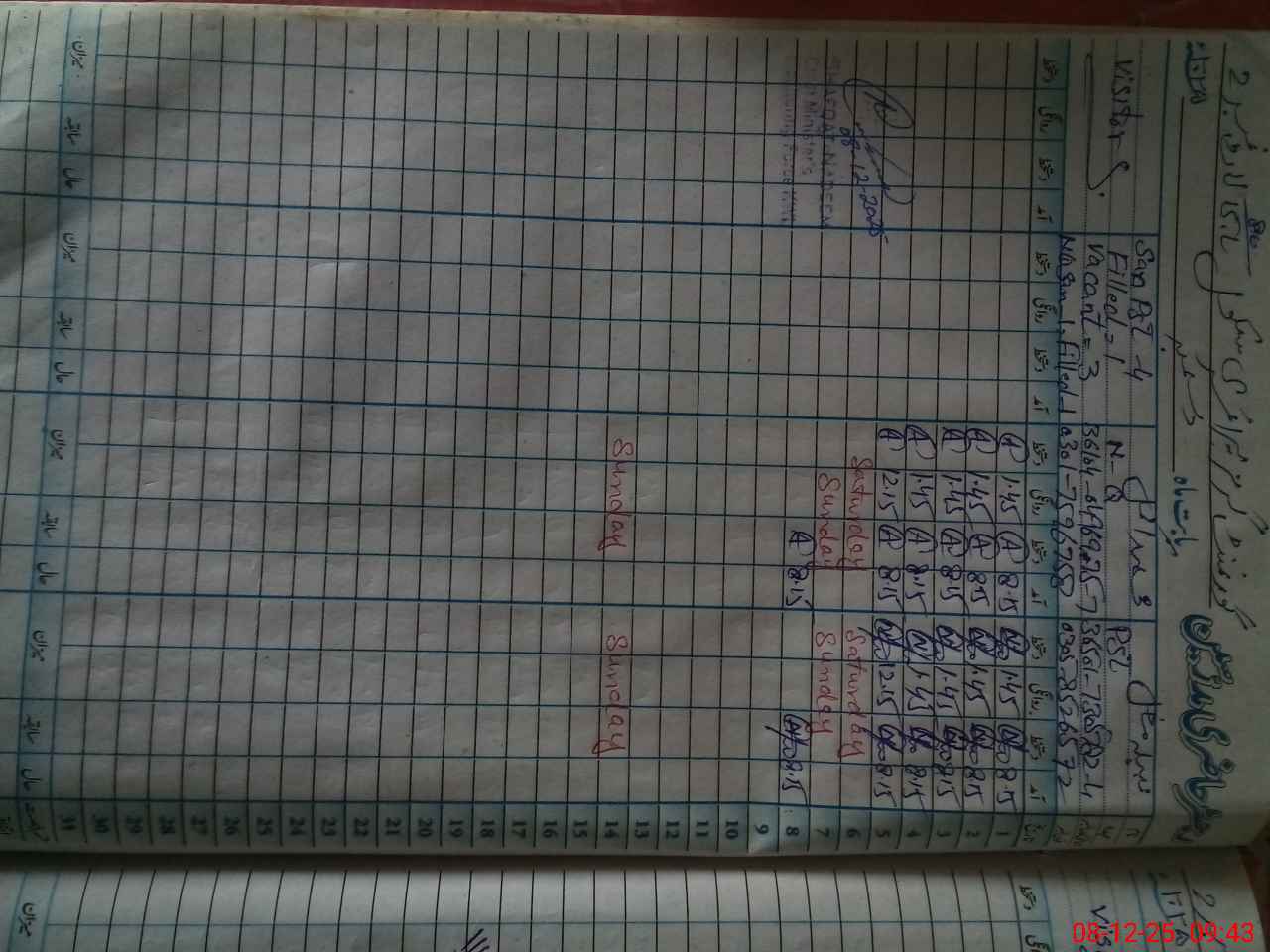| CNIC | Full Name | Designation | R/C | Absence During Last Calender Month |