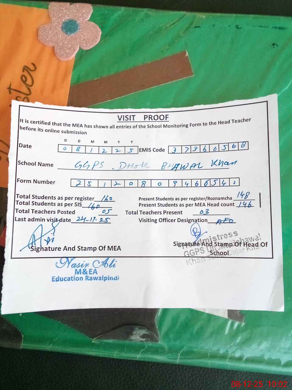 | EMIS Code: 37360568 | Name of School: GGPS DHOK BHAWAL KHAN | |||