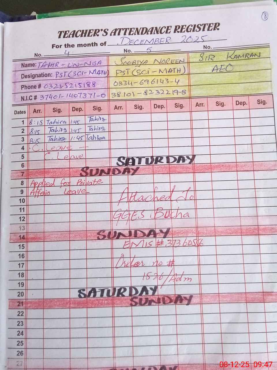 | Remarks (Use Separate Page if Required): Mst Sobiya Noreen PST Attch 19.12.2023 To | |||||