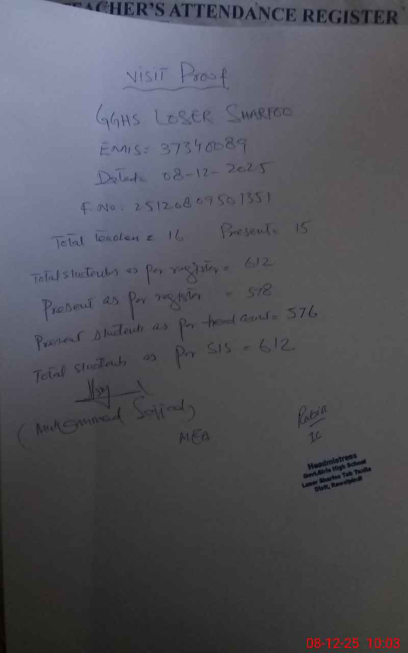 | EMIS Code: 37340089 | Name of School: GGHS LOSER SHARFOO | |||