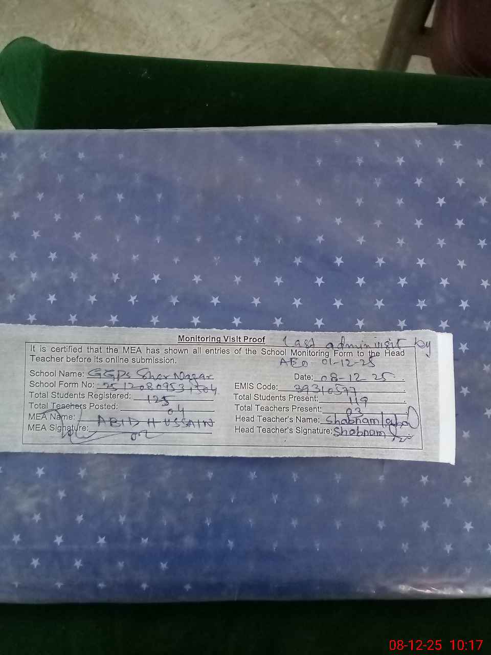 | Remarks (Use Separate Page if Required): Last Administrator visit by AEO as on 01-12-2025 | |||||