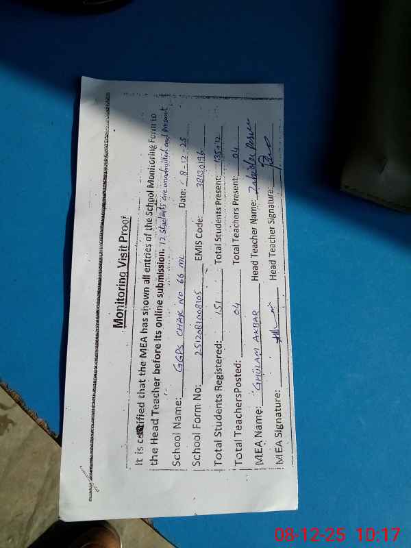 | Attendance Register | Head Teacher | MEA with School | Visit Proof |