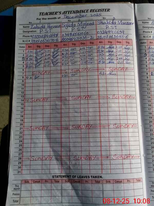 | Name: ZA**** PE**** Designation: (School Headmaster's/Headmistress's) PTC/JV Phone/Cell Number: 03**** |