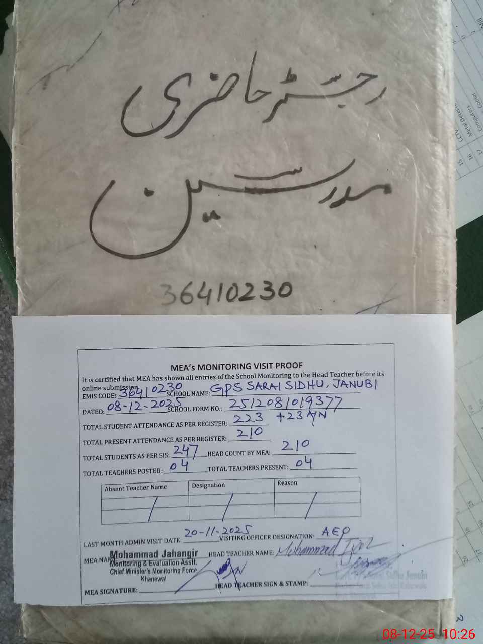 | EMIS Code: 36410230 | Name of School: GPS SARAI SIDHU JANUBI, SARAI SIDHU | |||