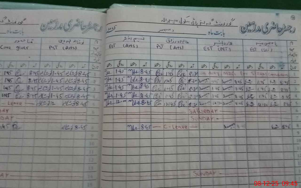 | CNIC | Full Name | Designation | R/C | Absence During Last Calender Month |