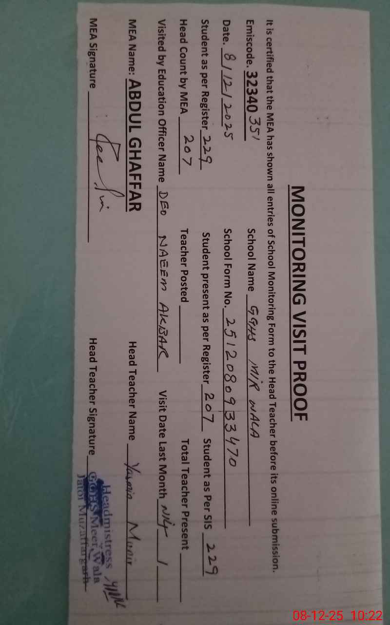 | EMIS Code: 32340351 | Name of School: GGHS MEER WALA | |||