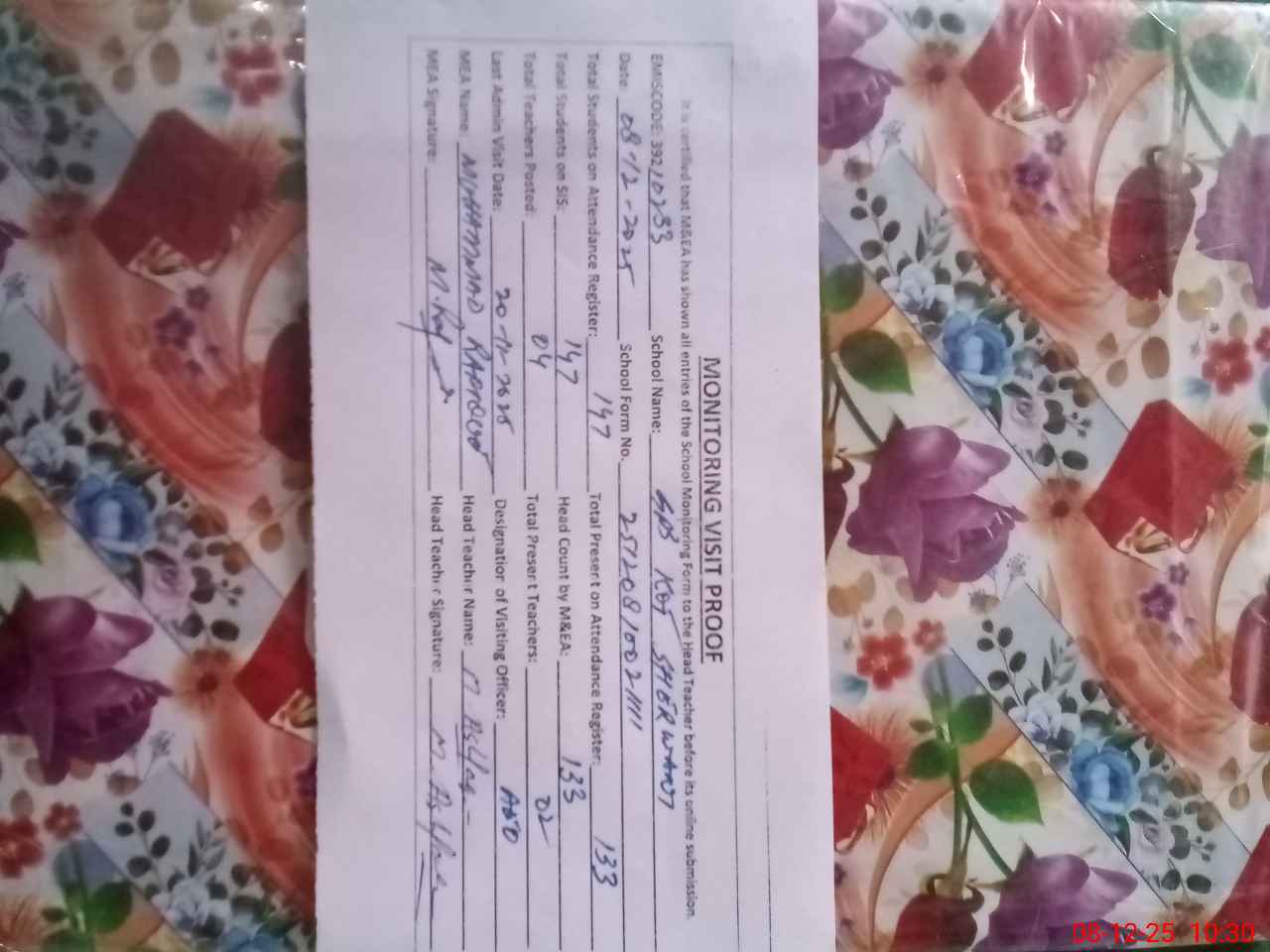 | Attendance Register | Head Teacher | MEA with School | Visit Proof |