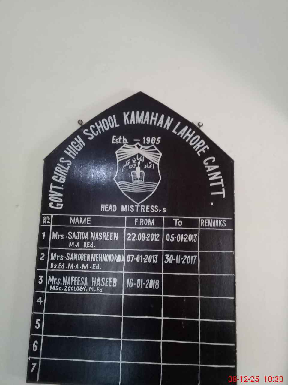 | Name: Gh**** Fi**** Designation: (School Headmaster's/Headmistress's) Principal Phone/Cell Number: 03**** |