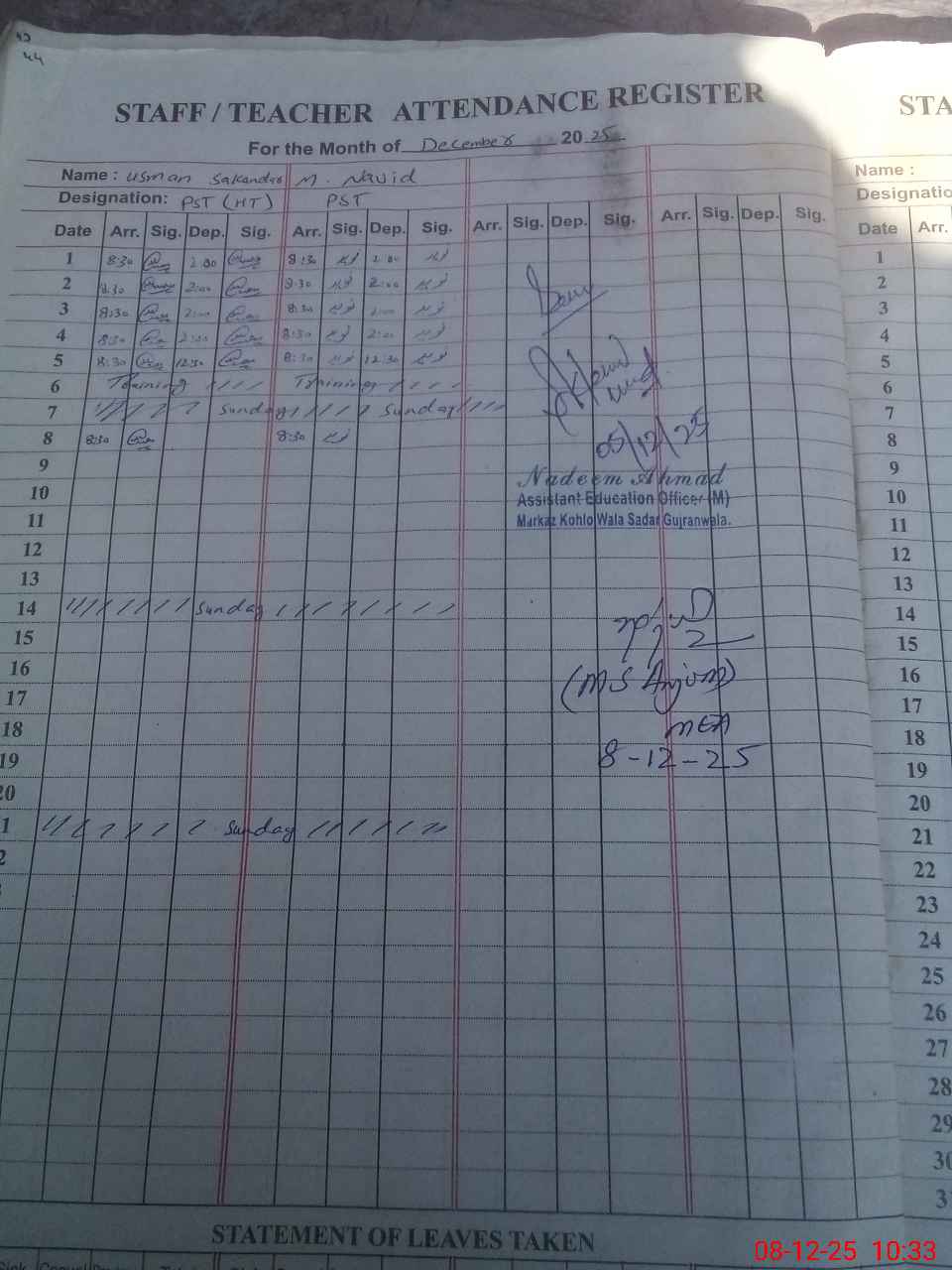 | Name: US**** SA**** Designation: (School Headmaster's/Headmistress's) PST Phone/Cell Number: 03**** |